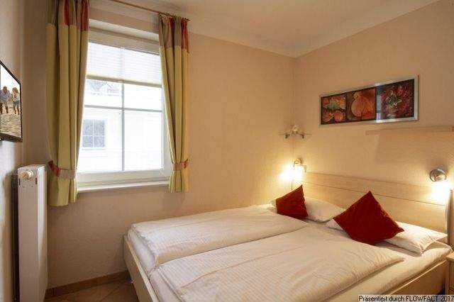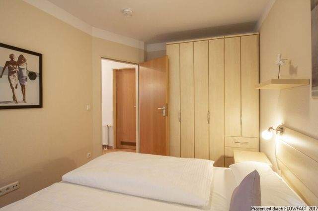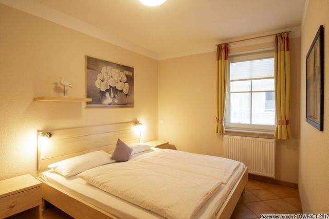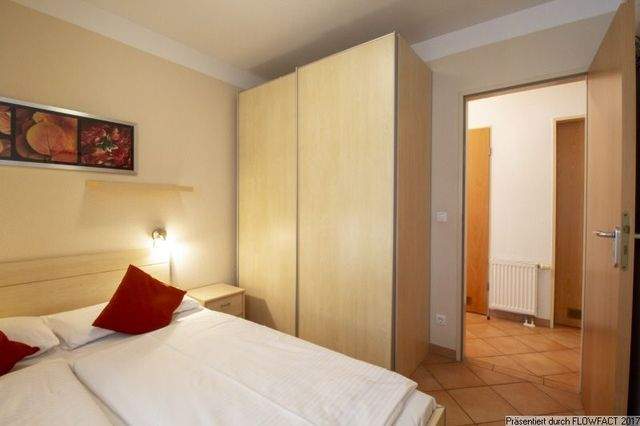 Die Wohnung verfügt über zwei Schlafzimmer in denen bis zu vier Personen Platz finden. Beide Zimmer sind mit Doppelbetten und einem großen Kleiderschrank ausgestattet. Auf der gegenüberliegenden Seite ist das Badezimmer mit Dusche, Waschtisch und WC. Für weiteren Komfort steht ein Gäste-WC zur Verfügung.