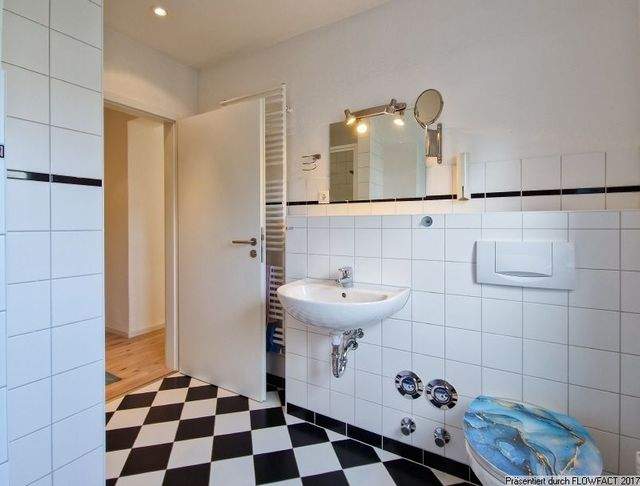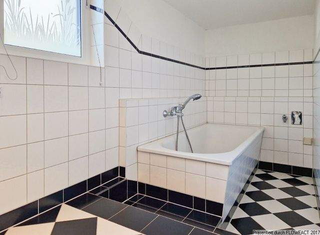 Das Tageslichtbad verfügt über Dusche und Badewanne - perfekt für gemütliche Stunden. Die Badewanne im Badezimmer ist über zwei Stufen erreichbar.