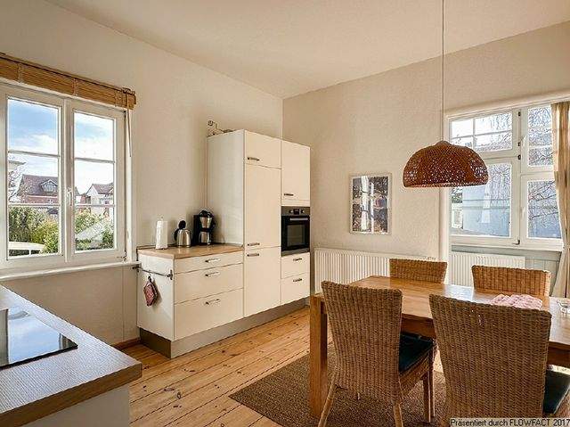 Die Wohnung Nr. 4 liegt im Erdgeschoss des Strandhauses Midgard und überzeugt mit einem eigenen Zugang, der über eine Treppe erreichbar ist. Diese stilvolle ca. 78 m² große Wohnung mit Südwest-Ausrichtung überzeugt durch clevere, hochwertige Einrichtung und viel Tageslicht. Der großzügige Eingangsbereich führt rechts in den hellen Wohnbereich mit offener Veranda, geradeaus in den Schlafbereich und links ins Bad. Das Bad besticht durch eine große Dusche, moderne Fliesen und Fensterlicht.